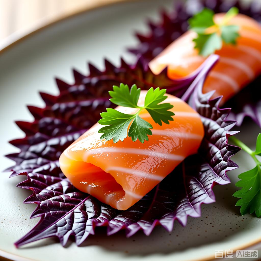 紫苏也是是一种比较常见的药食两用香料及食物。传统中医认为辛温,有散寒发汗、理气和胃之功。它嫩茎叶可生食、作汤、淹渍等,烧烤时是解油去腻的好伴侣,与生鱼、虾、贝类和鱼子酱等同食可增加芳香口感和去腥味。在精致的日本料理中这种两面紫的紫苏叶倍受欢迎,因为东方文化中又红紫的搭配代表大吉大利。